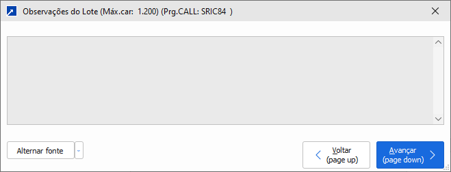 Descritivo da procedência do lote/série (até 40 caracteres).