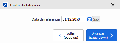 Para formação do custo do lote/série, somente serão consideradas movimentações até a data informada.