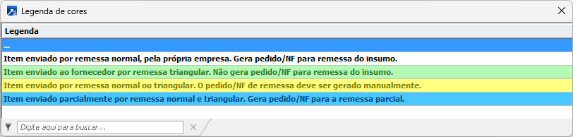 Observação: a linha do grid é colorida conforme o tipo de remessa do item.