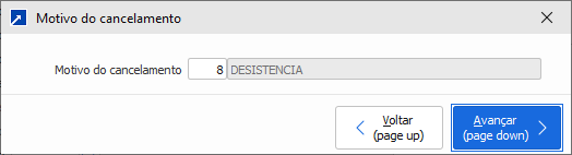 Abre a janela com o código e a descrição do motivo do cancelamento do item da requisição.