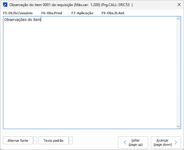 A função "F4-Consulta consolidada do estoque", disponível na inclusão do item, quando estiver aceitando o código do produto do primeiro item da requisição, abre a janela de consulta consolidada com a posição de estoque.