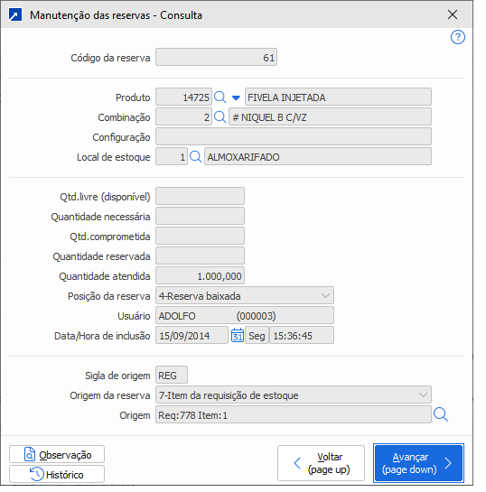 Este botão só é exibido se reserva requisições de estoque e é consulta.