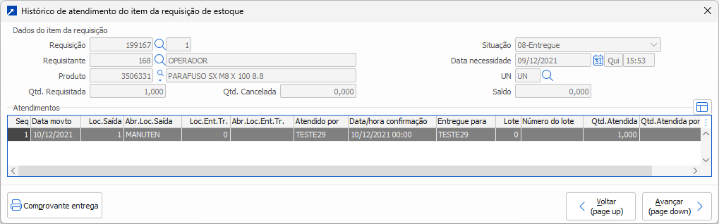 Data na qual pretende retirar este material do estoque (herdará a data informada no cabeçalho). É interessante que o responsável pelo almoxarifado saiba os prazos que tem para atender a cada pedido para poder organizar suas tarefas, assim como os demais setores da empresa.