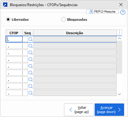 CFOPS/Sequências Bloqueios e restrições relacionadas a tabela genérica "10 - Natureza de Operação ICMS/IPI (CFOP)".
