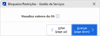 Bloqueios e restrições relacionadas ao módulo de Gestão de Serviços.