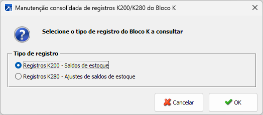 Disponível no menu EST 4.6-M a Manutenção consolida de registros K200 e K280 do bloco K do SPED.