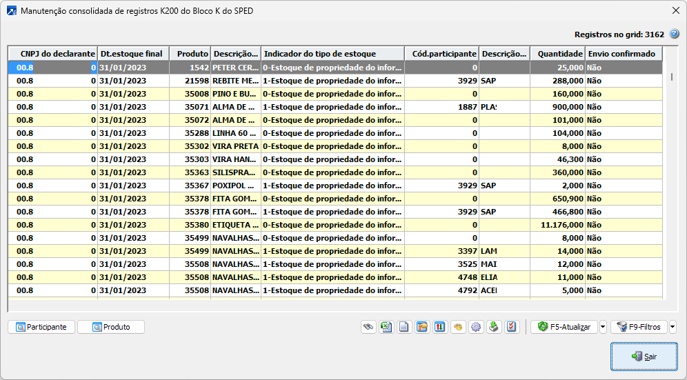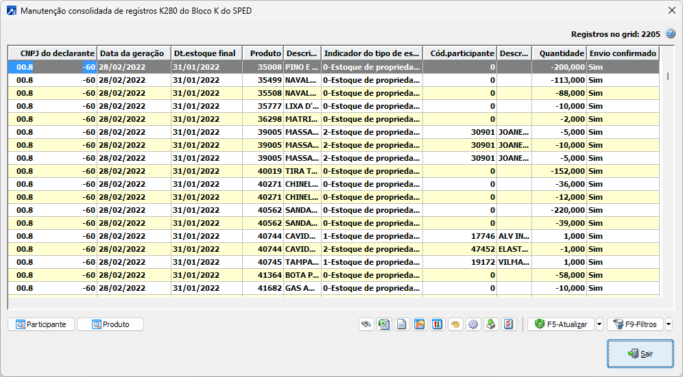 Manutenção consolidada de registros K200 do Bloco K do SPED - Saldos de estoque