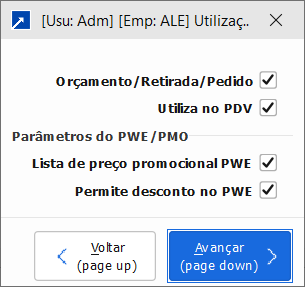 Permite desconto no PWE: Este campo define se permite desconto no PWE.