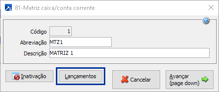 Este tópico é destinado apenas a criação de lançamentos de caixa/conta corrente, conforme o botão <Cria movimento> disponível na conciliação de extrato.