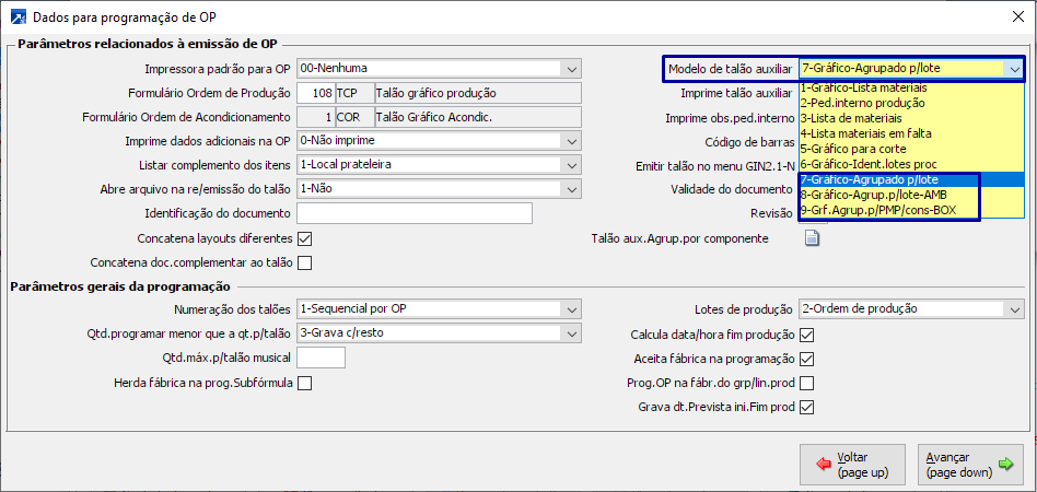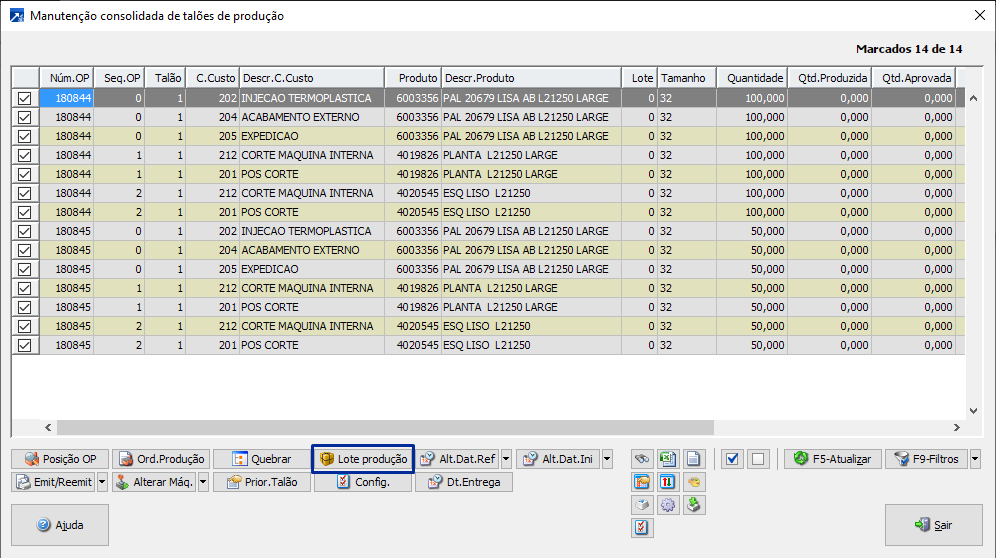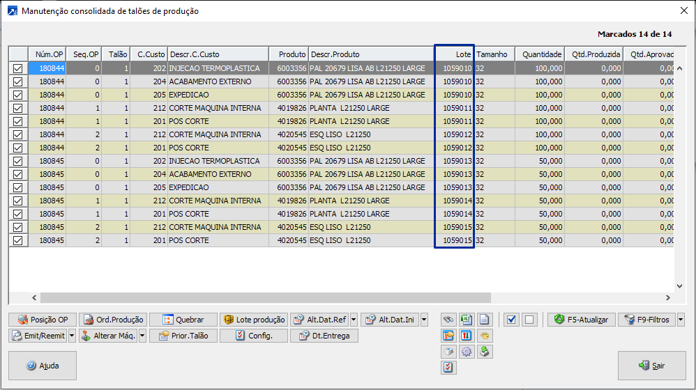 · Botão <Lotes produção>: Gerar os lotes de produção dos talões de produção marcados.