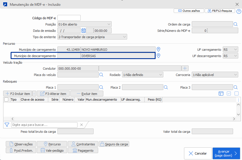 Por que o município de descarregamento aparece bloqueado para alteração no MDF-e?