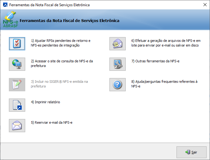Notas Fiscais de Serviço Eletrônicas As ferramentas da nota fiscal de serviço eletrônica (NFS-e) está disponível no menu AUE 2.2-K, para maiores informações acesse o link + Saiba mais.