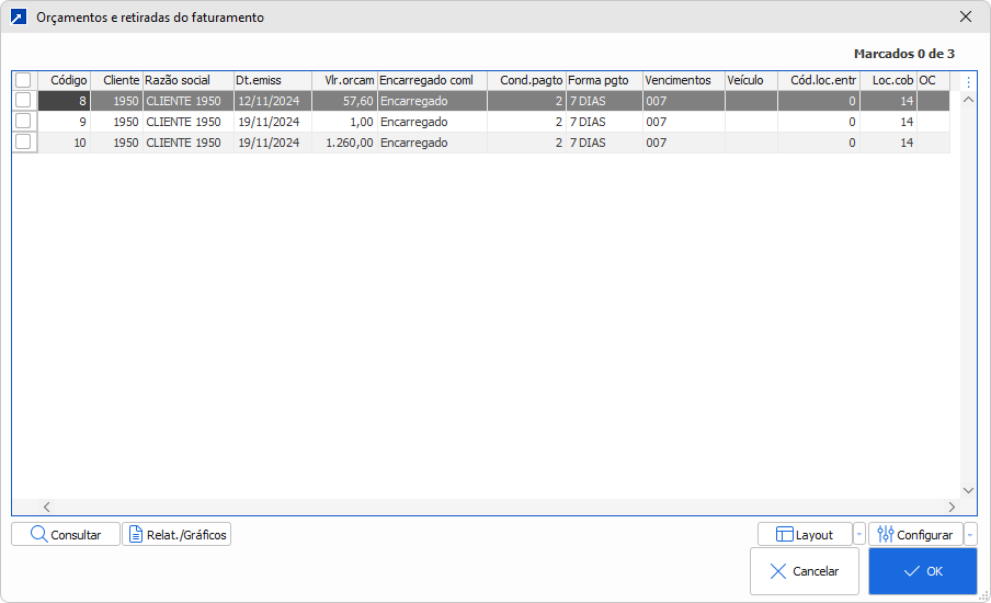 Irá carregar o cliente do parâmetro de empresa. + Saiba mais