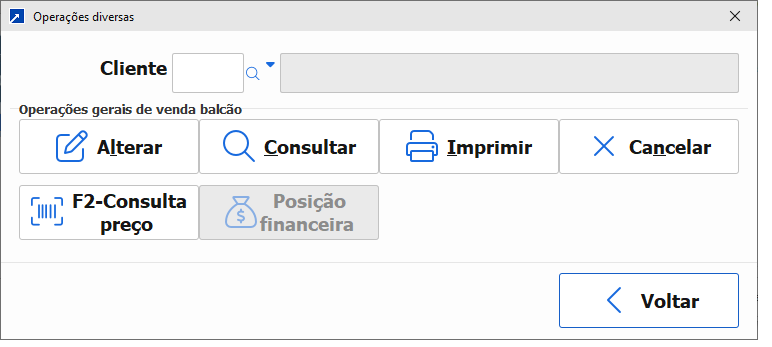 Através da tecla F4 é possível visualizar algumas opções do Venda Balcão.