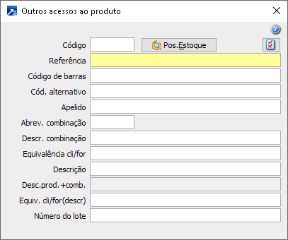 Outros acessos a cadastro de produto: Para acessar esta janela tecle F6 quando o cursor estiver posicionado em um campo de código de produto.