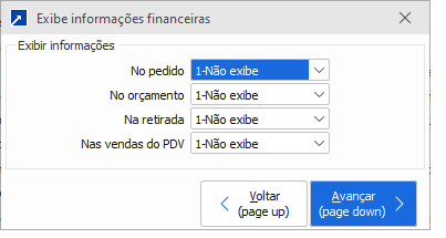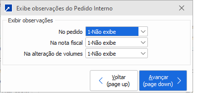 1-Não exibe: Não irá exibir as observações do pedido interno.