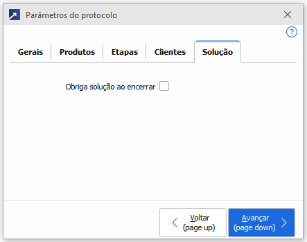 Obriga solução ao encerrar: Se marcado, obriga a ter descrição descrita ao encerrar o protocolo.