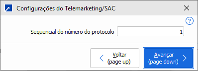 O sequencial pode alterado pela opção 1.2-A - Alteração de empresas, botão [Outras configurações], [Telemarketing/SAC], "Sequencial do número do protocolo".