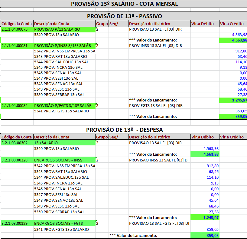Neste exemplo a baixo, será demonstrada a contabilização da provisão por cota mensal referente a 13º SALÁRIO.