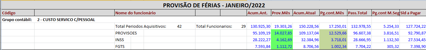 Neste exemplo abaixo, será demonstrada a contabilização da provisão por cota mensal referente a FÉRIAS, considerando a competência janeiro/2022.