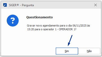 Ao finalizara operação, o SIGER® irá solicitar confirmação.