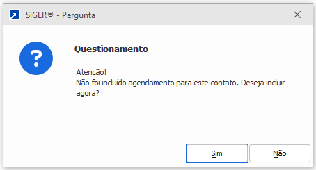 Com essa configuração, ao concluir o registro do contato o sistema sempre irá solicitar