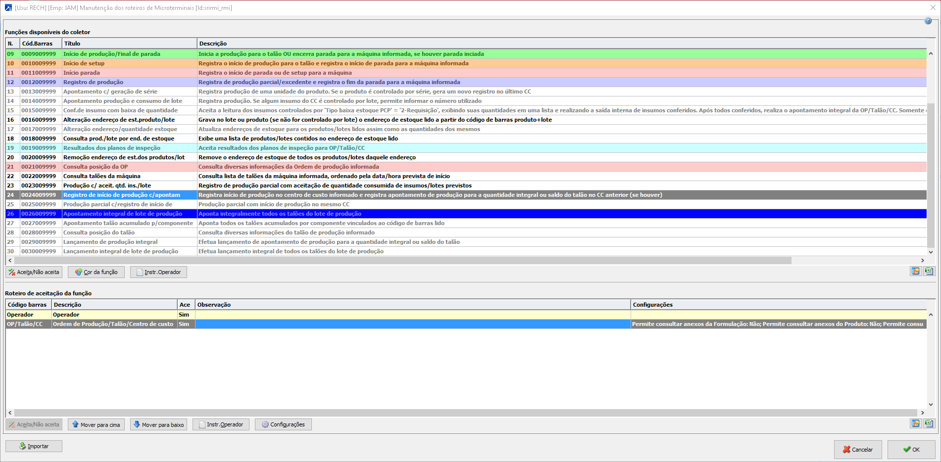 '2-Não controla': Quando a empresa estiver configurada para não controlar operador, esse campo não será aceito na função.