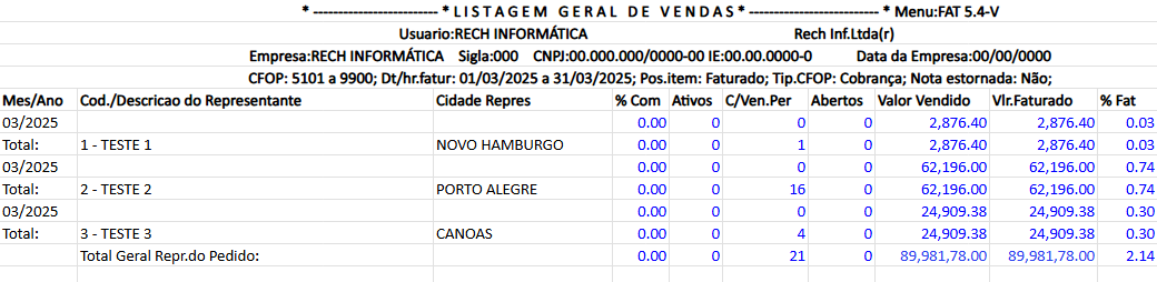 No SIGER®, é possível gerar um relatório que permite analisar a quantidade de clientes ativos, clientes em aberto e aqueles que realizaram vendas durante um período específico, agregando os dados por representante.