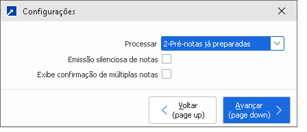 Esta seleção é responsável pela emissão de notas. Nela é possível selecionar qual/quais notas vão ser emitidas.
