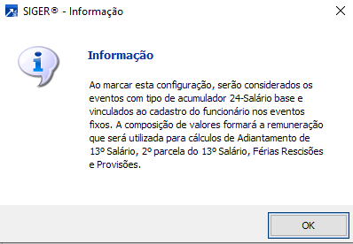 Check box marcada, indica que, os professores terão calculados o salário pelos eventos fixos do cadastro.