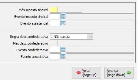 Botão, utilizado para configurar os eventos para os descontos sindicais, tais como: contribuição sindical, assistenciais e associativas, conforme Acordo Coletivo.