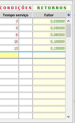 Campo utilizado para configurar o adicional tempo de serviço, por faixa. Utilizado para intercalar percentual diferenciados, entre triênio e quinquênio.
