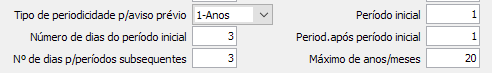 Configurar a quantidade de dias de aviso prévio por tempo serviço e partir de quantos anos começa a contar e o limite de tempo para acumular os 3 dias.