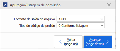 Ao clicar neste botão é exibida a tela para configurações para a apuração/listagem de comissao.
