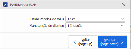 Ao clicar neste botão é exibida a tela para configuração dos Pedidos via Web.