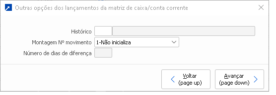Um movimento com caixa de integração, com o mesmo tipo do caixa anterior e com a conta contábil das despesas bancárias, configurando o tipo de lançamento contábil (lançamento da despesa nas contas de resultado).