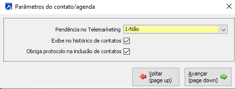 Pendência no Telemarketing: 1-Não (não permite deixar o contato como pendente), 2-Sim, aceita campo no contato (permitirá deixar o contato como pendente, aceitando na manutenção de contatos) e 3-Na inclusão de contato sempre irá gravá-lo como pendente.