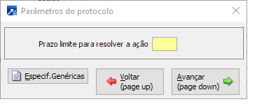 O campo "Prazo limite para resolver a ação" indica o prazo que será carregado para dentro do protocolo como sugestão de data limite para solução da situação. Exemplo: reclamações possuem 3 dias para fechamento da solicitação.