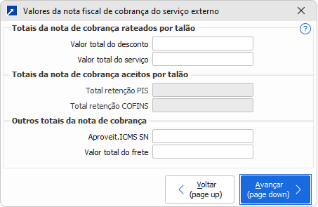 Exibe o valor total do serviço previsto, conforme definido na remessa do serviço externo.
