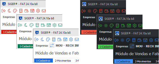 Este botão permite que você escolha a cor que será usada como destaque em todo o sistema. Essa cor é utilizada para realçar diversos elementos de tela, como ícones, linha de ajuda, barras de destaque, componente selecionado, entre outros.