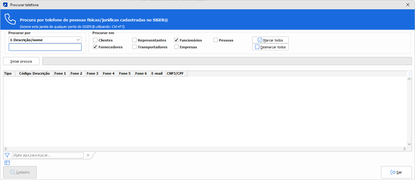 Função para buscar registros de diferentes cadastros.