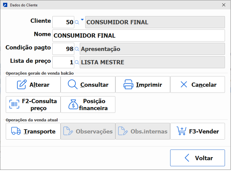 Utilização Após configuradas as informações, basta acionar a rotina e inserir um operador com permissão. Após realizar a venda, pressiona F3 para finalizar. Inserir as informações necessárias e pressionar F3. Conferir as informações.