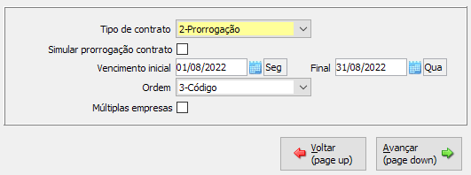 Menu FPA 5.5-L - Lista os funcionários com vencimentos de contrato conforme a seleção das datas, referente ao primeiro contrato e a prorrogação.