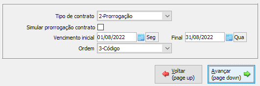A listagem do vencimento de contrato será listado pelo menu FPA 5.5-C, 5.5-L, 5.5-D e pelo 5.5-P. Somente serão listados os vencimentos, quando for informada a prorrogação de contrato no cadastro do funcionário menu FPA 1.8-A botão [Profissionais 1].