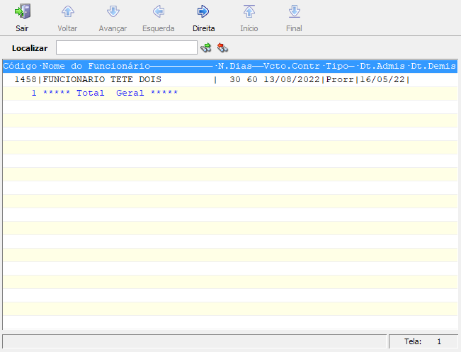 Menu FPA 5.5-D - Abre a consulta simplificada dos funcionários com vencimentos de contrato conforme a seleção da datas.