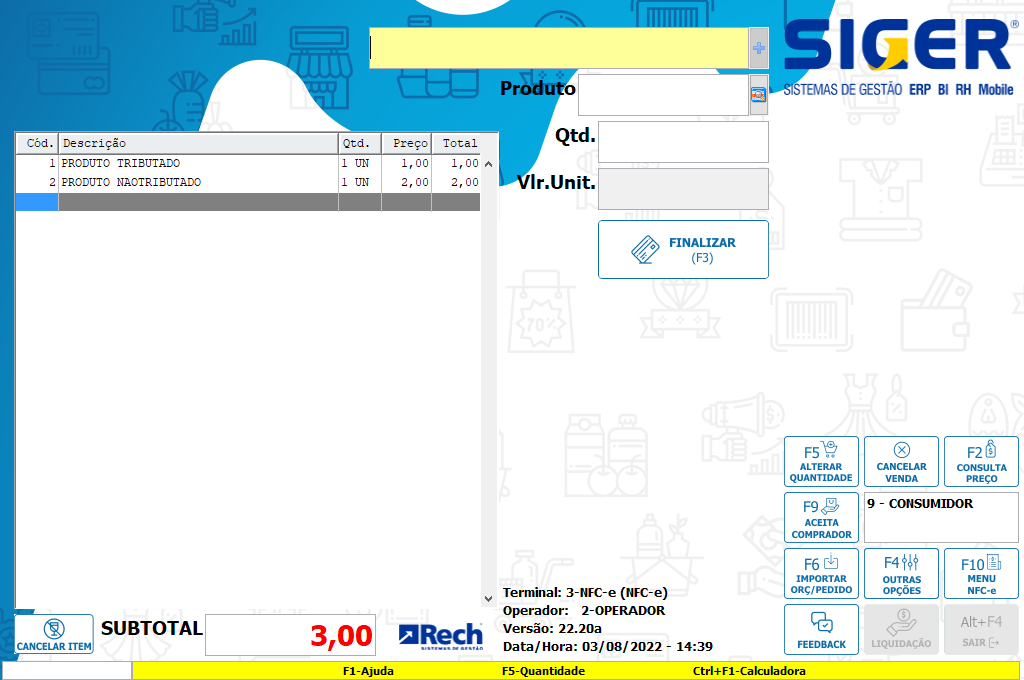 Após informar todos os itens esse botão pode ser acionado para fechar a venda, aceitando outras informações, como pagamentos.