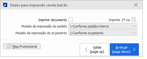 Se marcado vai exibir o Código do orçamento ou pedido e valor no final da venda balcão.