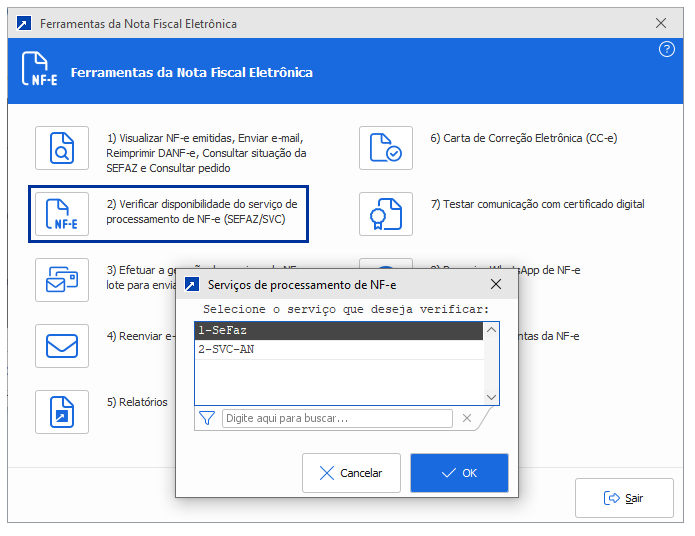 Sendo possível consultar o servidor de recepção normal das notas (SEFAZ) e o ambiente de contingência (SVC-AN).