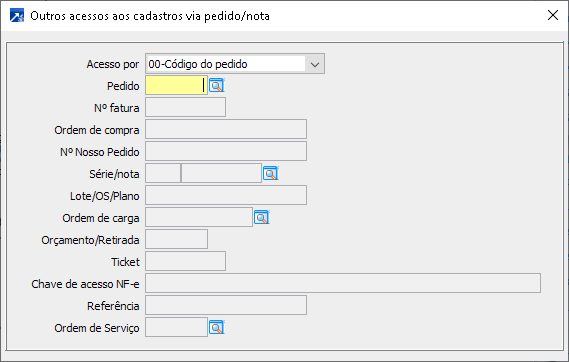 F4-Acesso via pedido/nota: A partir deste atalho é possível acessar o cadastro pesquisando por diversas formas, exemplos na imagem a seguir.