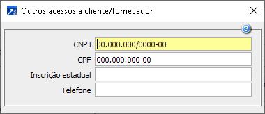 F6-Acesso via CNPJ/CPF: A partir deste atalho é possível acessar o cadastro pesquisando pelo CNPJ, CPF, IE (Inscrição Estadual) e Telefone.